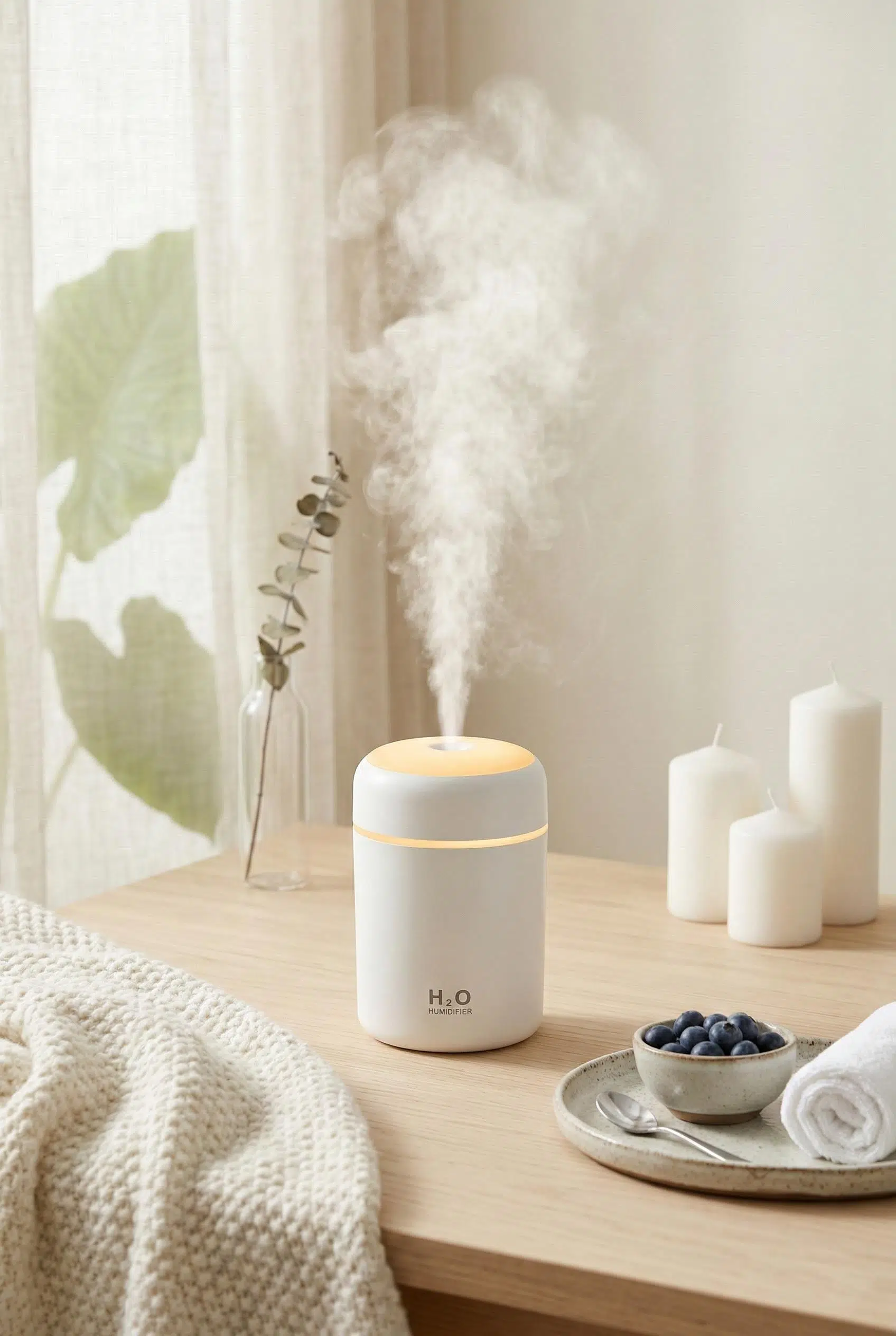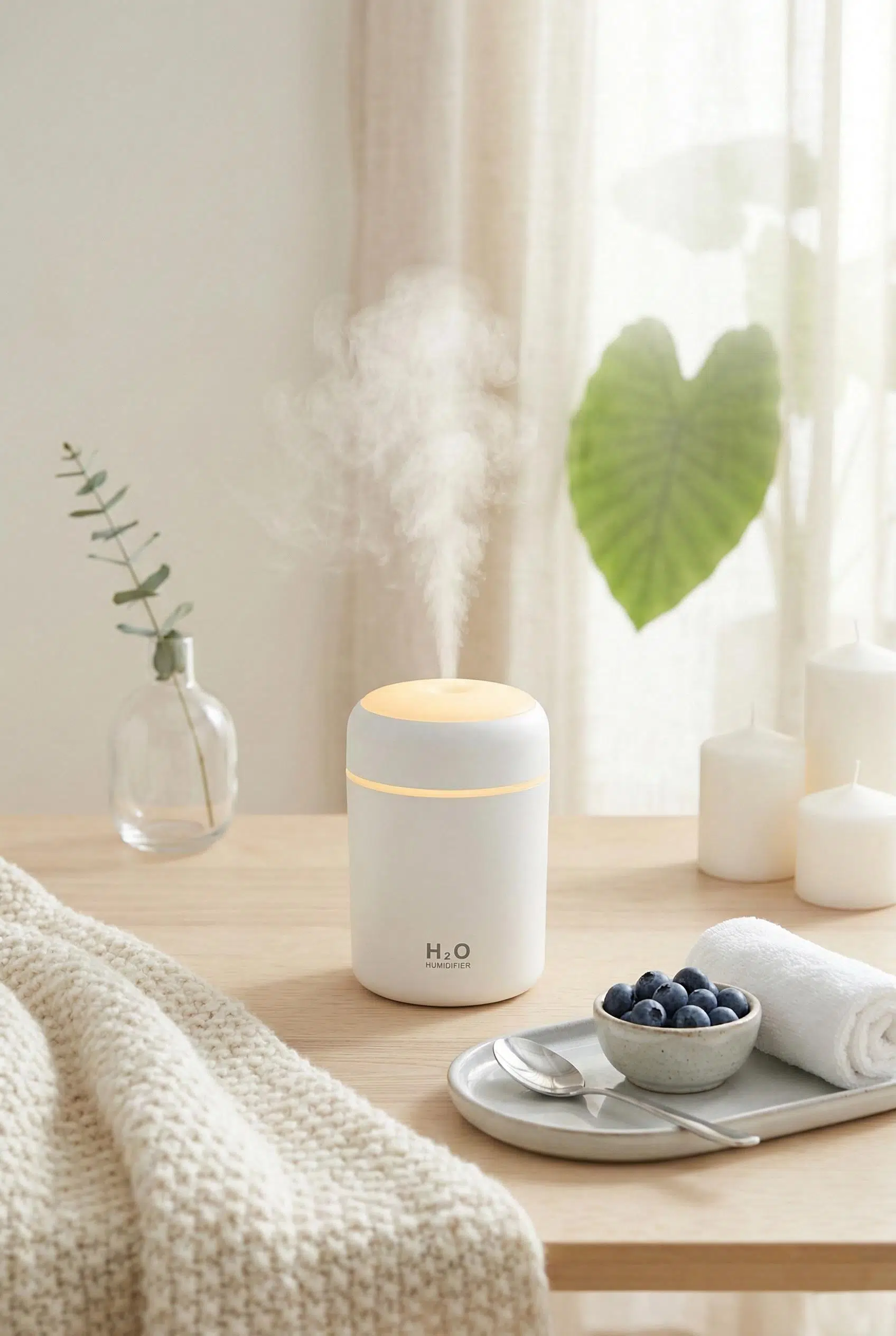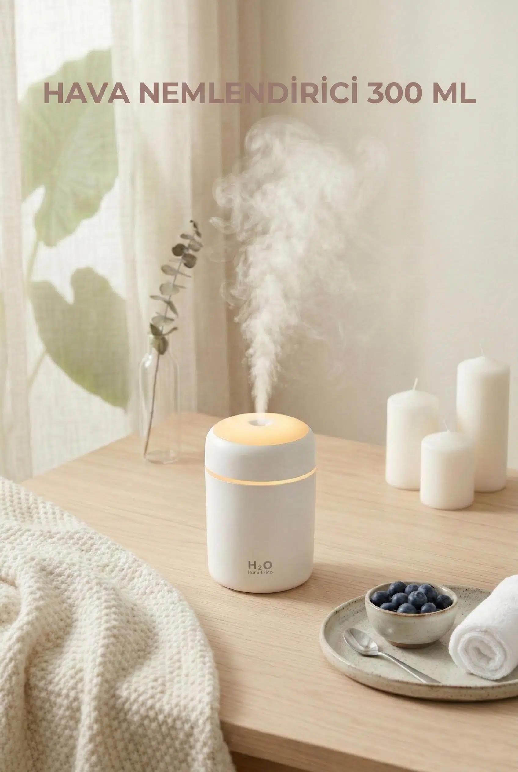 Yaşam alanınızdaki havayı tazelemek ve nem dengesini korumak için tasarlanan bu şık nemlendirici, huzurlu bir atmosfer yaratırken kompakt tasarımıyla her masaya uyum sağlar.
