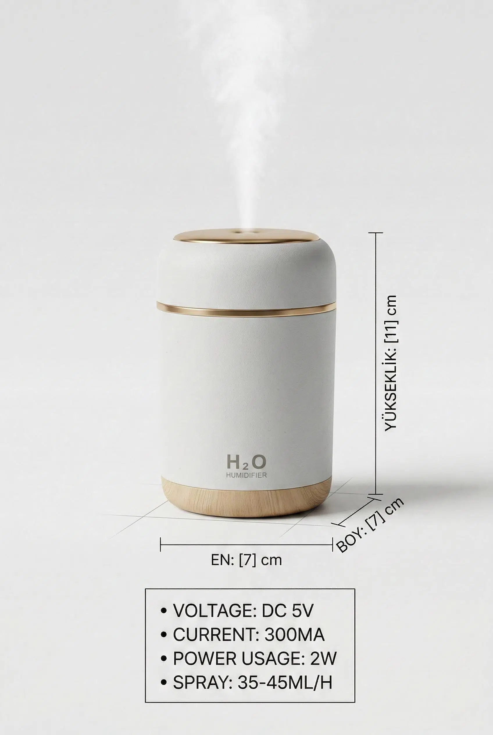 300 ml Kapasite: Tek dolumla saatlerce kesintisiz nemlendirme sağlayarak ortamın kurumasını engeller.