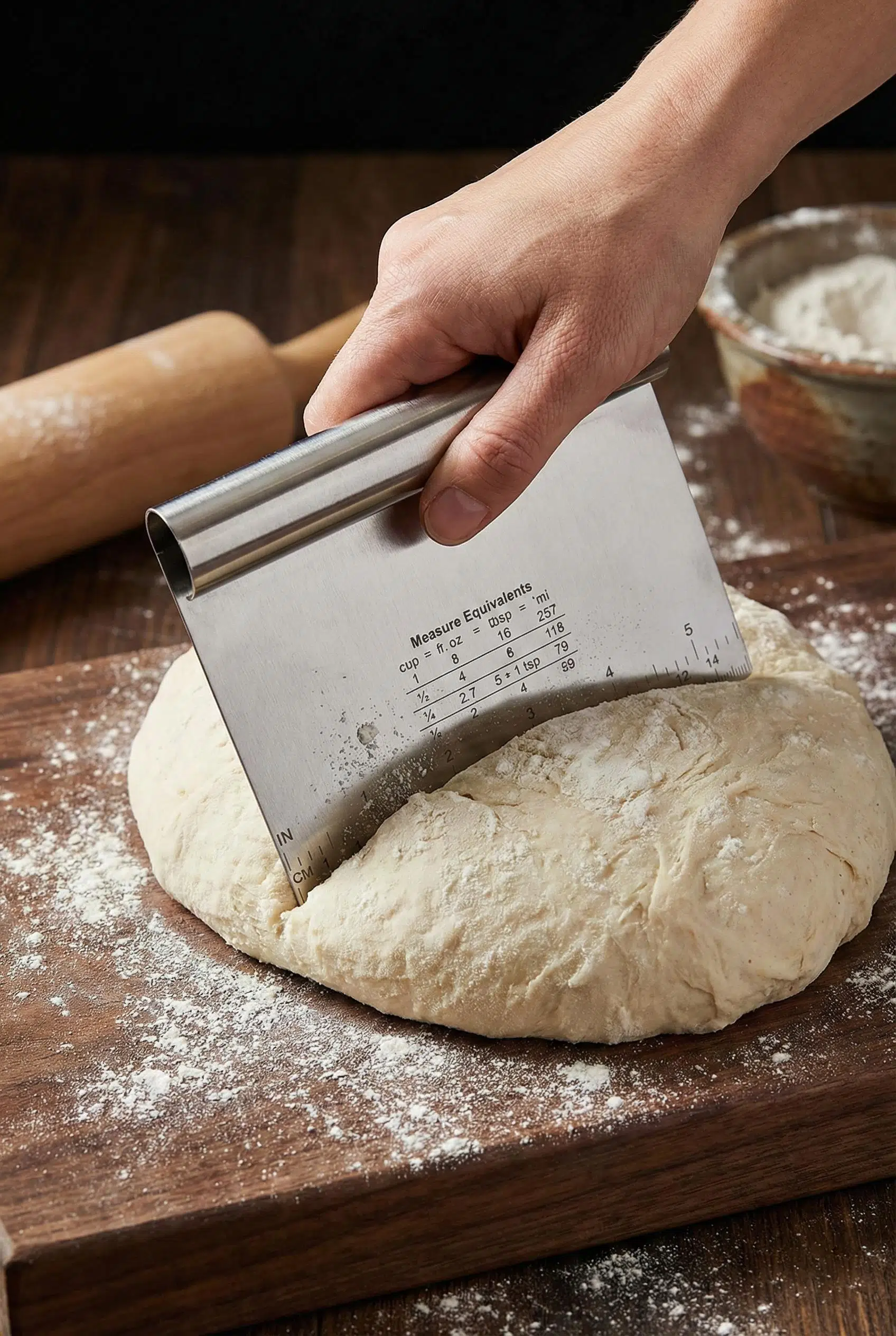 Mutfakta profesyonel bir pastane deneyimi sunan bu paslanmaz çelik hamur kesici, hamurlarınızı porsiyonlara ayırmak ve şekillendirmek için tasarlanmış çok amaçlı bir yardımcıdır.